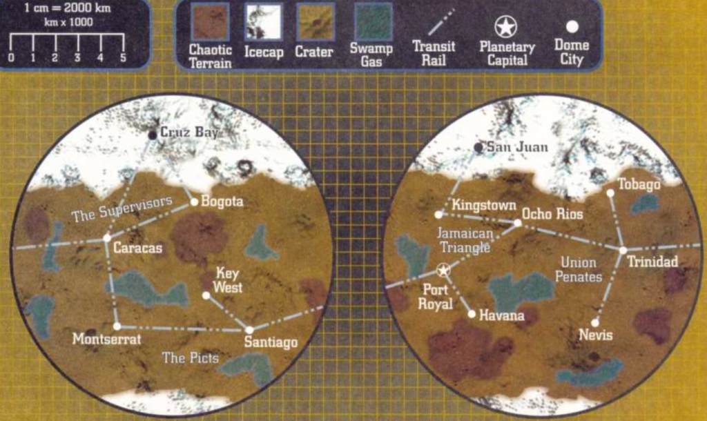 In 2398, a small SCAd team deposed Caracas’ ruling criminal gang and reinstated a civilian government. Over the following decades, the newly-proclaimed Planetary Administration grew to encompass the surrounding settlements. and now governs the entire Caracas Plateau.